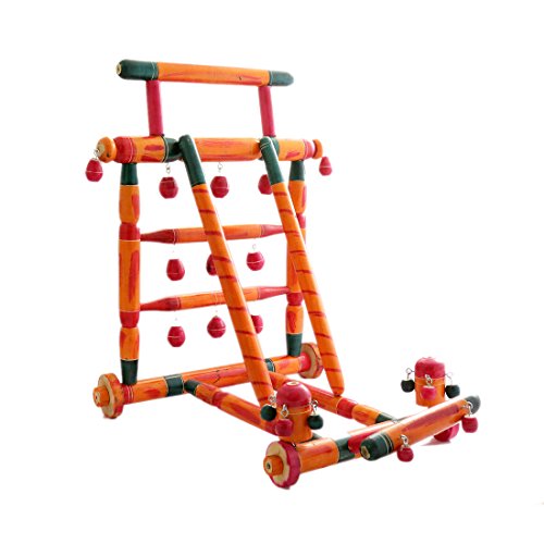 Motor development:- helps to stand and improve weight bearing.Helps the infant to move forward and carry on with walking.It’s a bright colored wooden baby walker.Wooden rods blend with naturally obtained colors are fixed into each other providing a strong base and beautiful frame.Water-drop hangings makes it more attractive.Its sharp-less edges and light weight material let the Toddlers love to move around with it. :- four wheel walkers provides extra stability and prevents kid from frequent fall.
