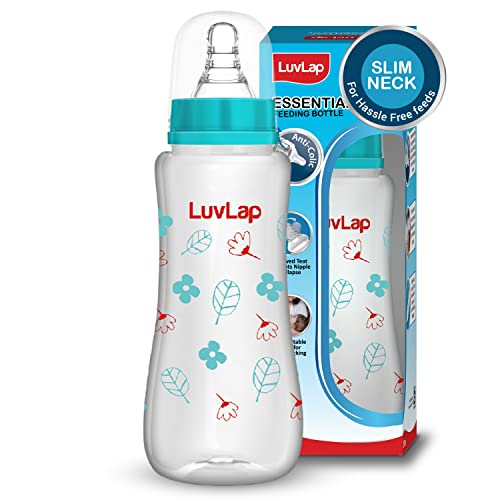 Specification: LuvLap Anti-Colic Slim / Regular Neck Essential Baby Feeding Bottle, 250ml, New Born / Infants / Toddler Upto 3m+ , Wild Flowers, BPA Free,Green