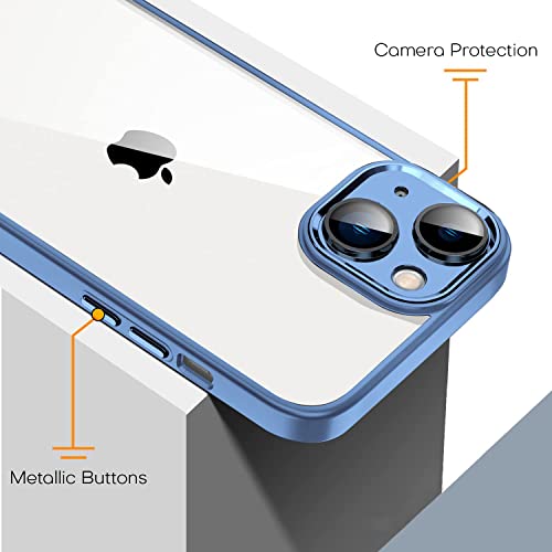 EGOTUDE Ultra Hybrid Camera Lens Protection [Never Yellowing] Back Cover Case for iPhone 14 (Sierra Blue)