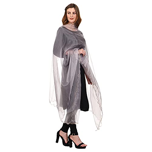 SWI WITH LABEL Women’s Embroidered Organza Dupatta (SD4_Grey_Free Size)