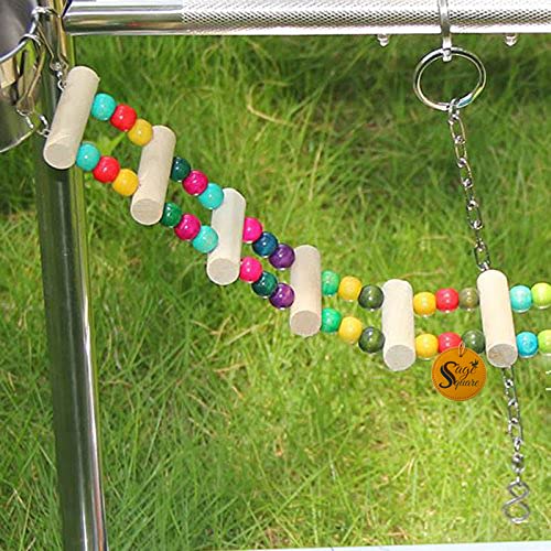 48cm / 19 Inches Playful Natural Wood Bead Swing Flexible Ladder Toy for Cockatiel, Lovebird, Budgerigar, Sun Conure…