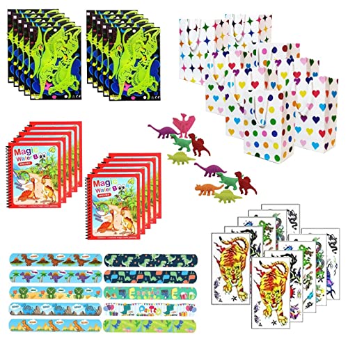 🌵Whole Dino Combo Set Contains: 10 Pcs. Glow in the dark- Dino Theme; 10 Pcs. Slap Bands Dino Theme; 10 Pcs. Tattoo Sheet, assorted Prints; 10 Pcs .Grow in Water; 10 Pcs Magic Water Coloring Book, 10 Pcs. Goody Bag.